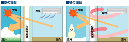 夏は太陽熱を反射して涼しく、冬は暖房エネルギーを逃がさないといった「遮熱複層ガラス」があります。