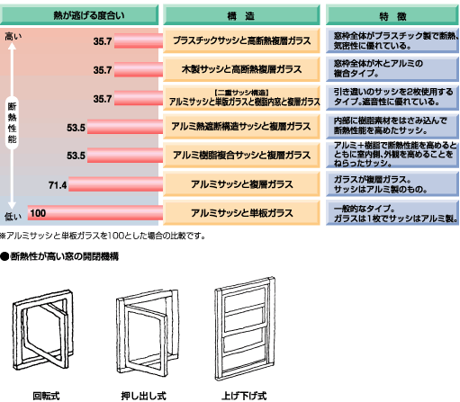 更に窓ガラスだけでなくサッシの断熱性、気密性、水密性も高いものを選ぶことが大切です。